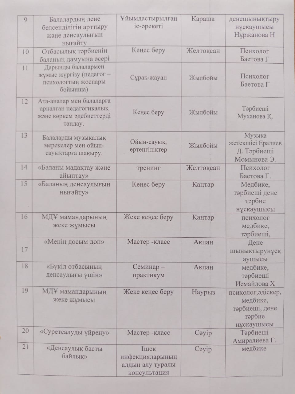 Құрметті ата-аналар мен қамқоршылар! Бала тәрбиесі мен дамуына көмек көрсету мақсатында «№1 бөбекжай-бақшасы» базасында консультациялық пункттің жұмысы басталғанын хабарлаймыз. Консультациялық пункттің жұмысы – мектепке дейінгі жастағы балалардың ата-аналарына (заңды өкілдеріне) психологиялық-педагогикалық, әдістемелік және консультациялық көмек көрсетуге бағытталған. Пункттің қызмет бағыттары: Баланы мектепке дейінгі ұйымға дайындау жөнінде кеңес беру; Баланың жеке ерекшеліктерін ескере отырып, дамытуға арналған…